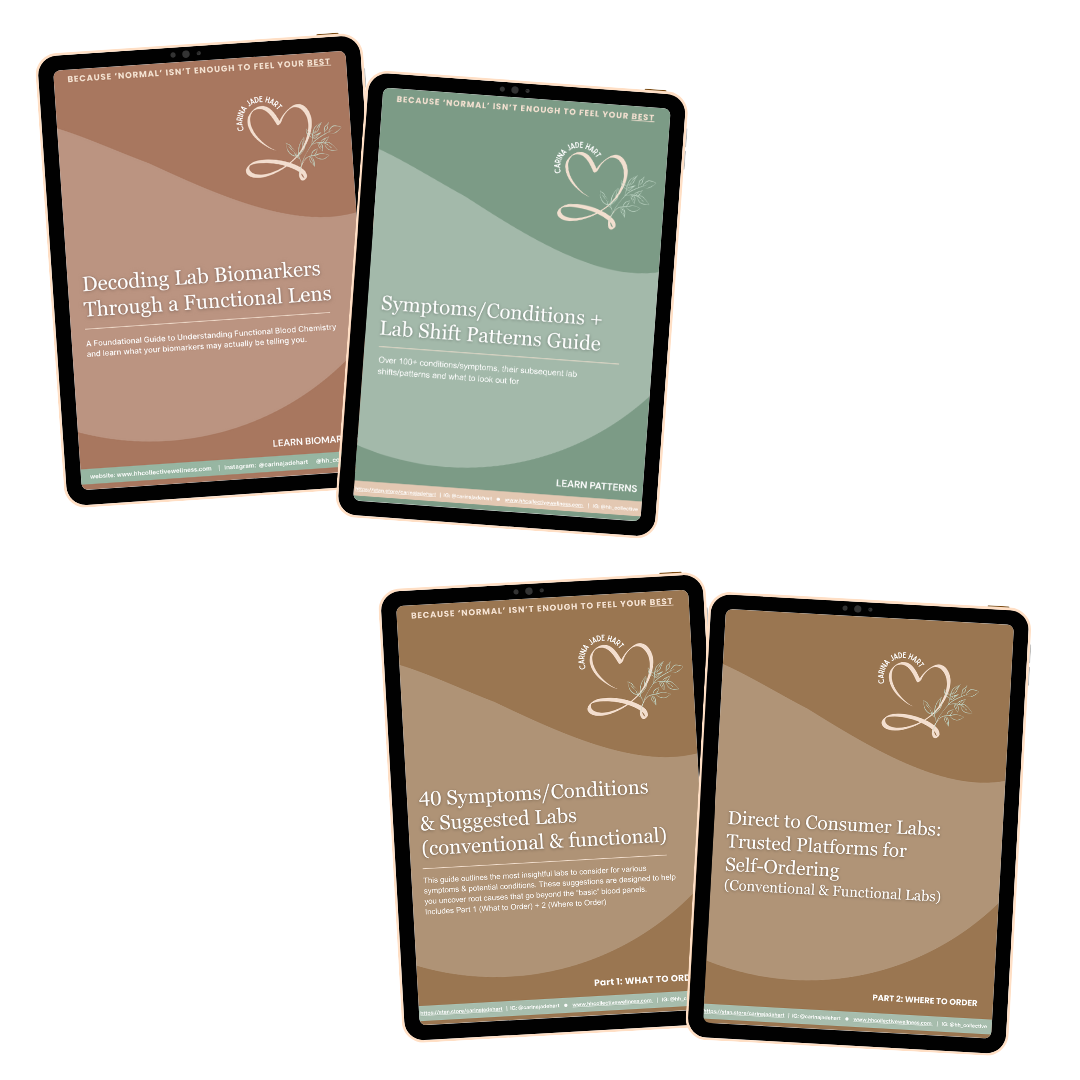 Whether you're navigating fatigue, bloating, headaches, insomnia, hormone chaos, chronic illness, mystery symptoms -- or just want deeper insight into your labs; this 3-in-1 toolkit gives you the power to interpret and understand your bloodwork (and your child’s) through a holistic, functional lens.
