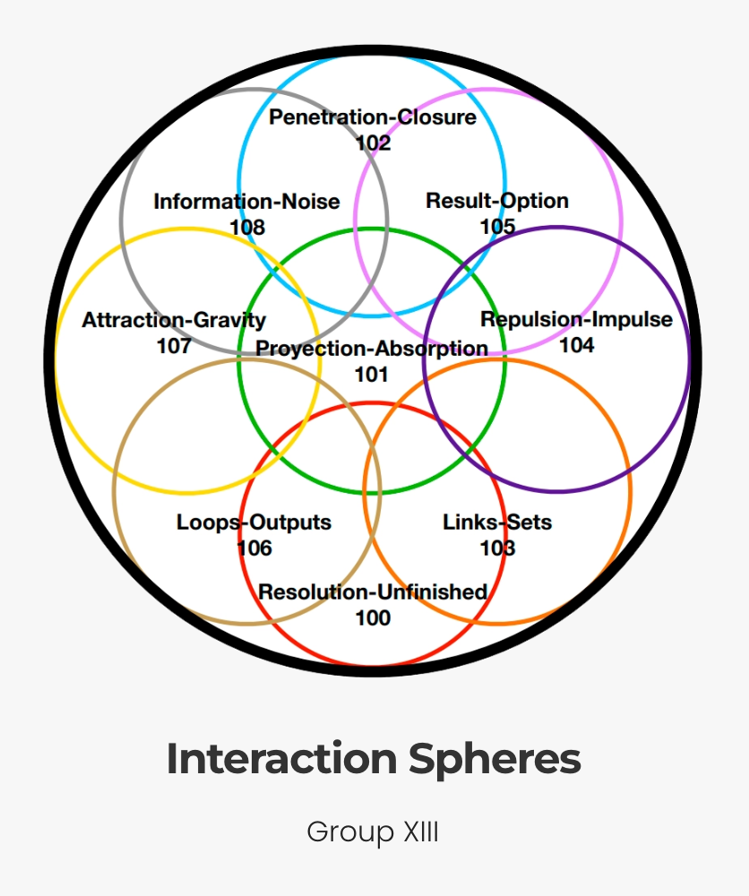 All the Spheres that make up the different 13 groups are connected to each other in one way or another. The Structure is a network of Spherical Fractals that generate a moving gear. This movement is what is truncated by the accumulation of contamination from each format and its cleaning is the main objective of Sphere Reset.